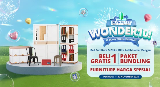 Jangan ragu memilih penyimpanan dari Olymplast. Desain modern akan membuat ruangan lebih lega.