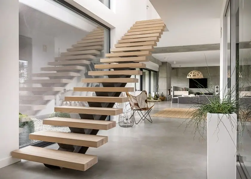 Tangga Kombinasi Besi-Kayu Tanpa Railing | Gambar: roohome.com