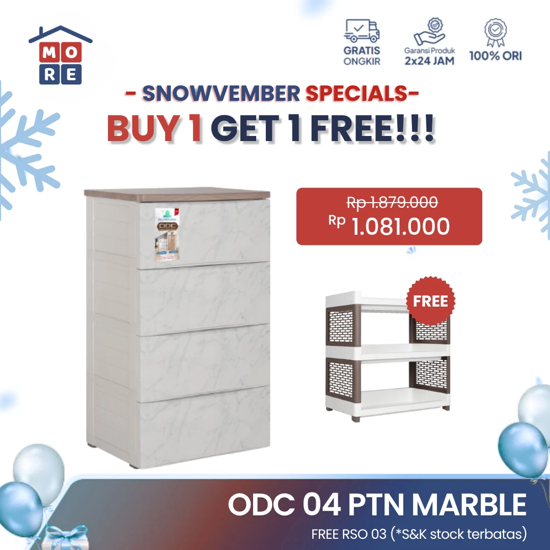 ODC 04-MARBLE - Laci Penyimpanan Plastik Modern 4 Susun - Drawer Cabinet Serbaguna
