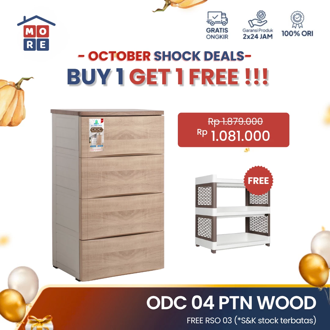 ODC 04-WOOD - Laci Penyimpanan Plastik Modern 4 Susun - Drawer Cabinet Serbaguna