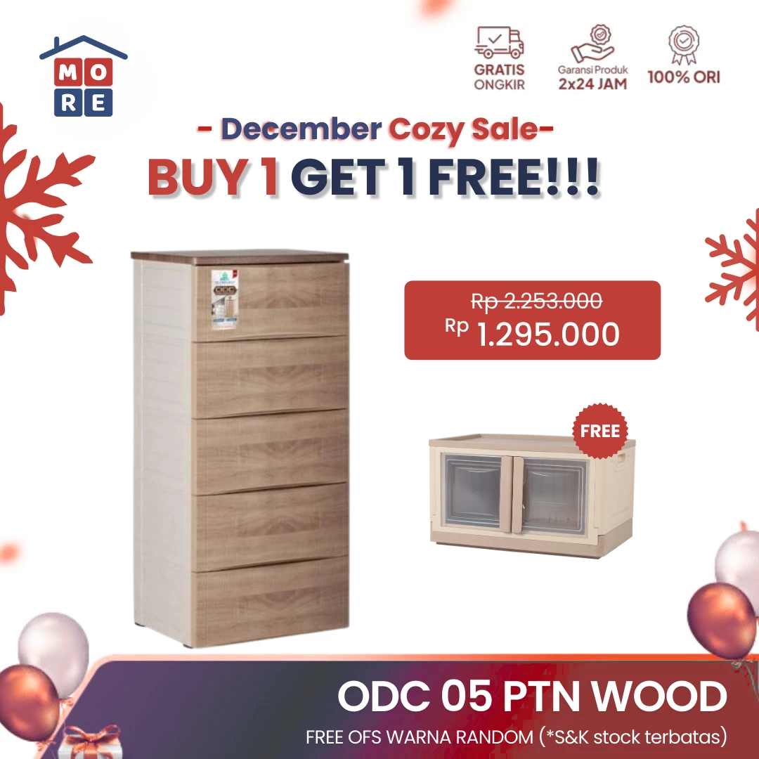 ODC 05-WOOD - Laci Penyimpanan Plastik Modern 5 Susun - Drawer Cabinet Serbaguna
