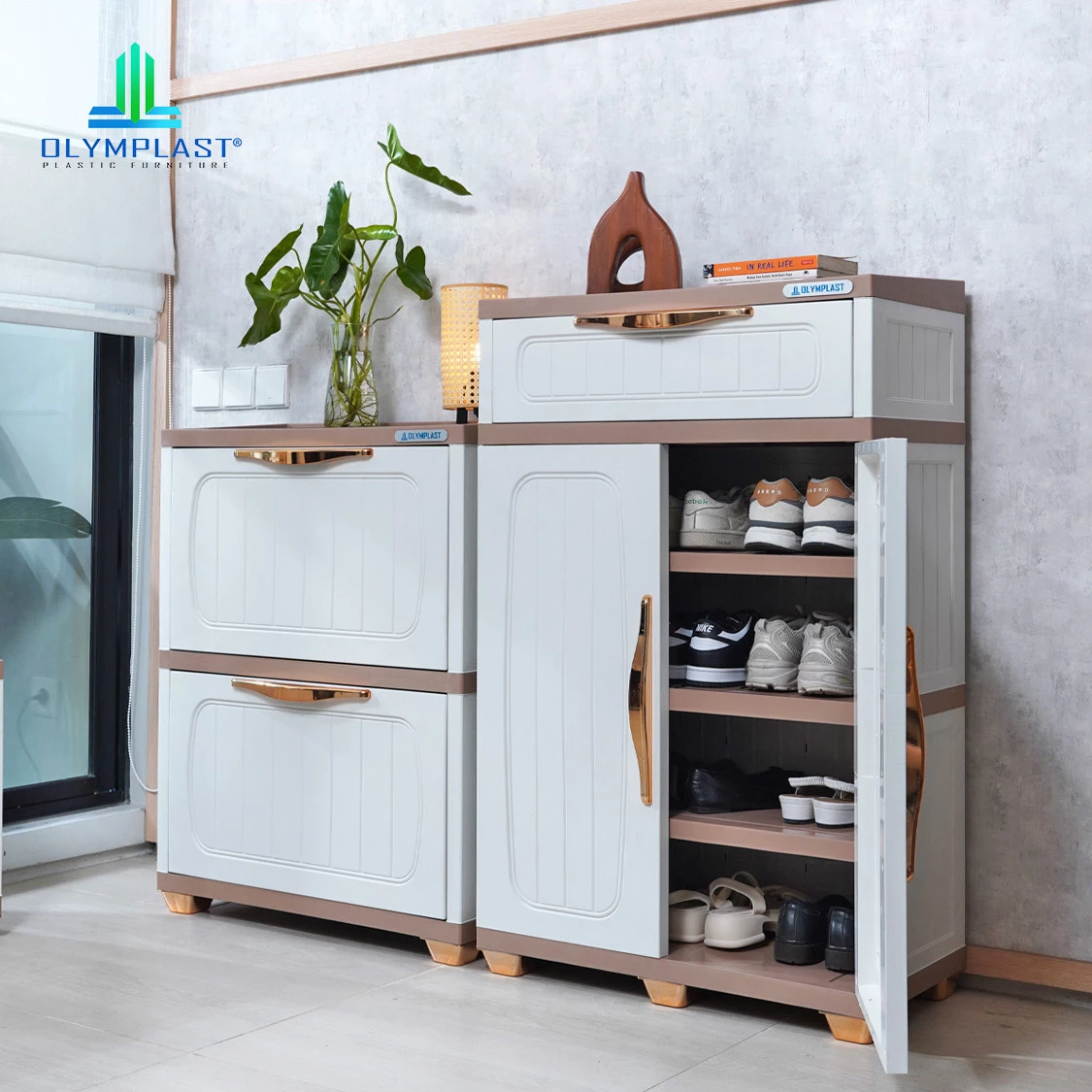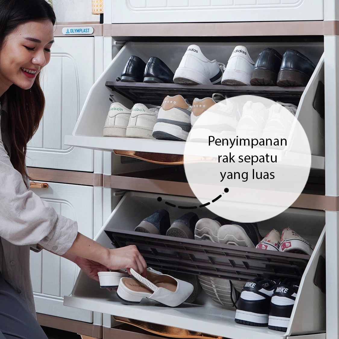 SRO 2P1L - Rak Sepatu Olymplast - Rak Sepatu Susun Tertutup - Rak Sepatu 4 Tingkat 1 Laci