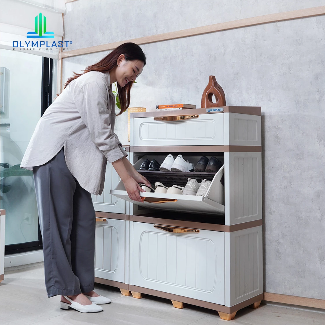 SRO 2SW 1L - Rak Sepatu Plastik - Rak Sepatu Susun Tertutup - Rak Sepatu 4 Tingkat 1 Laci