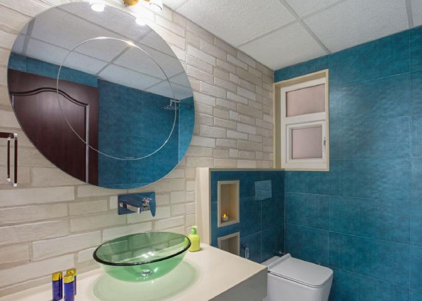 Jika tak ingin mengecat ulang dindingnya, cukup tambahkan aksesoris berwarna cerah, seperti keset, handuk atau dispenser sabun yang senada. Pilihan ini lebih praktis dan mudah diubah sesuai selera.